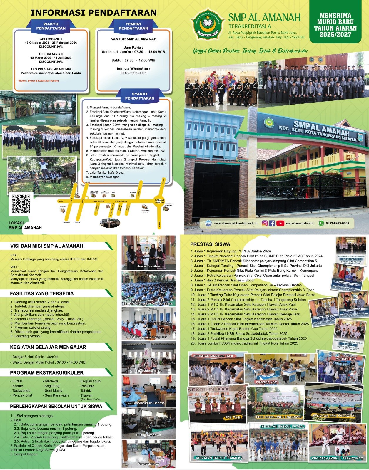 Sistem Penerimaan Siswa Baru (SPMB) SMP Al Amanah Tahun Ajaran 2026/2027 Telah di Buka. Sekolah yang beralamat di Jl. Raya Pupsiptek, Babakan Pocis, Bakti Jaya, Kota Tangerang Selatan telah eksis bersama membangun pendidikan dalam mencerdaskan kehidupan bangsa.